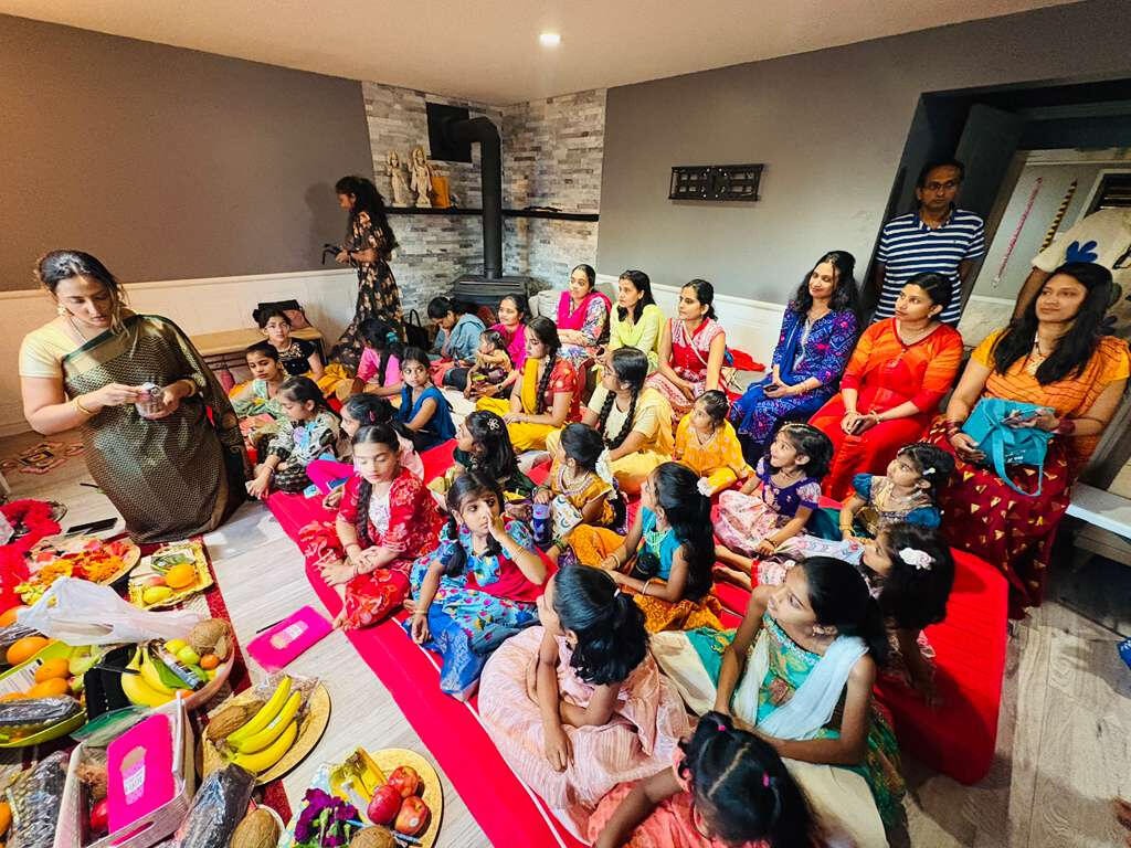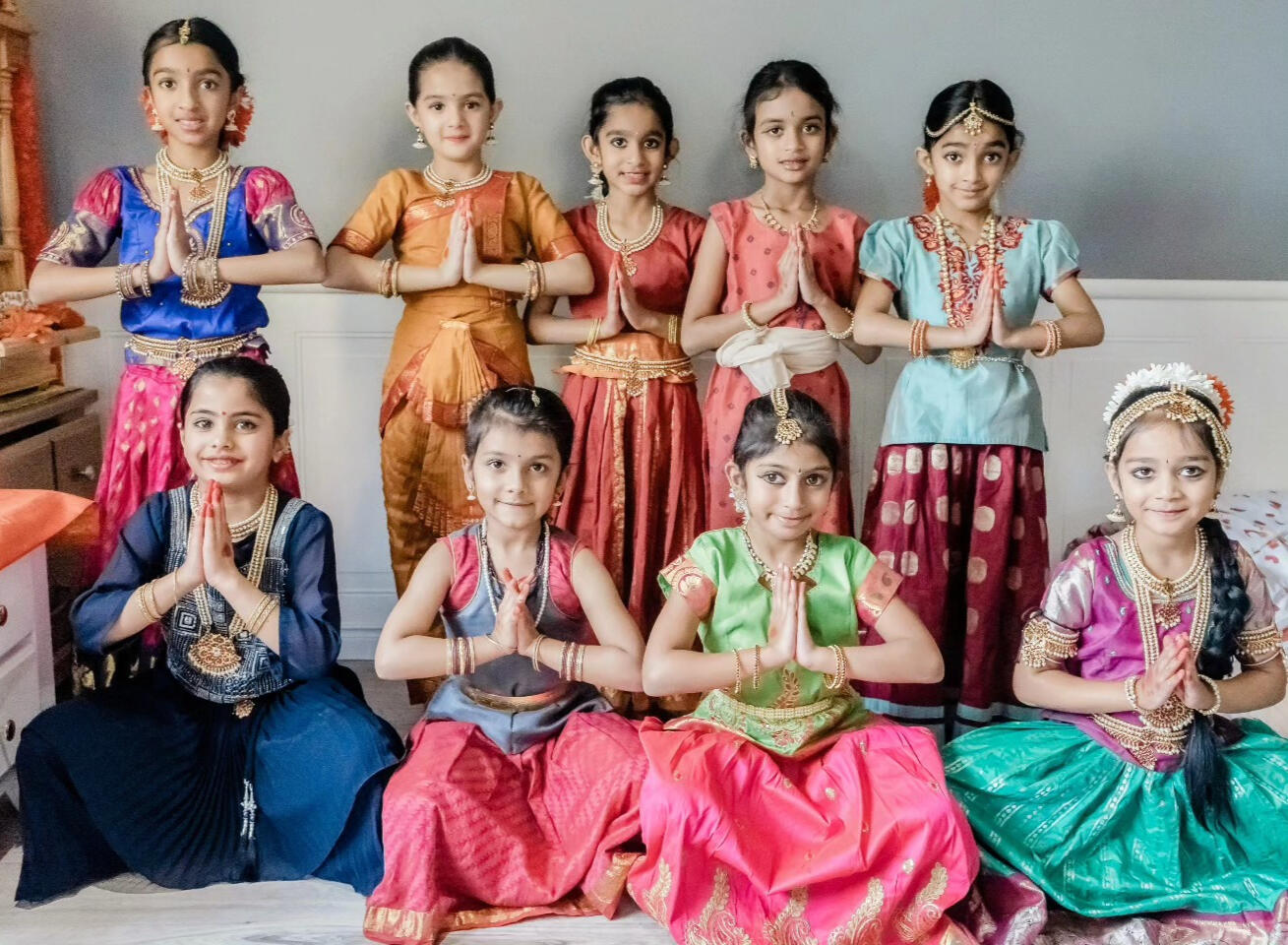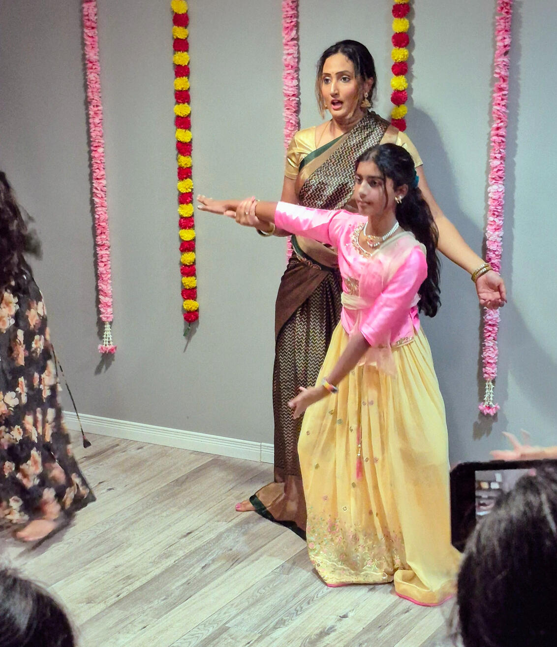 Beyond technique, SV School of Dance focuses on building a strong connection to culture and tradition. Students participate in a Saraswati Puja conducted in the traditional way, similar to what is practiced in India, reinforcing respect for learning, art, and the teacher. Each movement is taught with its proper name and purpose, including detailed explanations of hand gestures and footwork, so students understand what they are expressing. Songs are translated and explained in context, helping students see their relevance today. Every class ends with a namaskar, reinforcing gratitude, discipline, and respect for the art form.